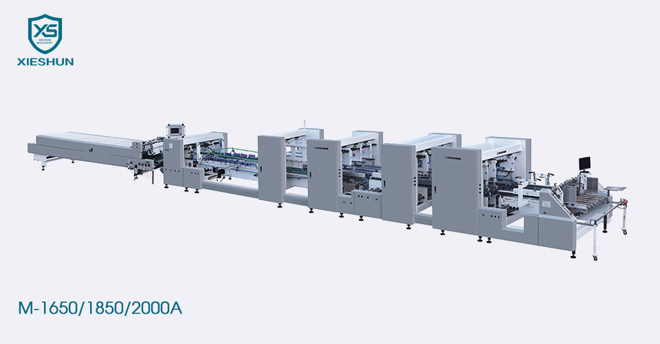 Xieshunm-1650/1850/2000a Серия права линия Автоматична гофрирана папка Gluer е подходяща за сгъваеми гофрирани картонени опаковки. Вътрешната плоча се премества с помощта на линейни водачи, за да се осигури прецизност и лекота на работа.